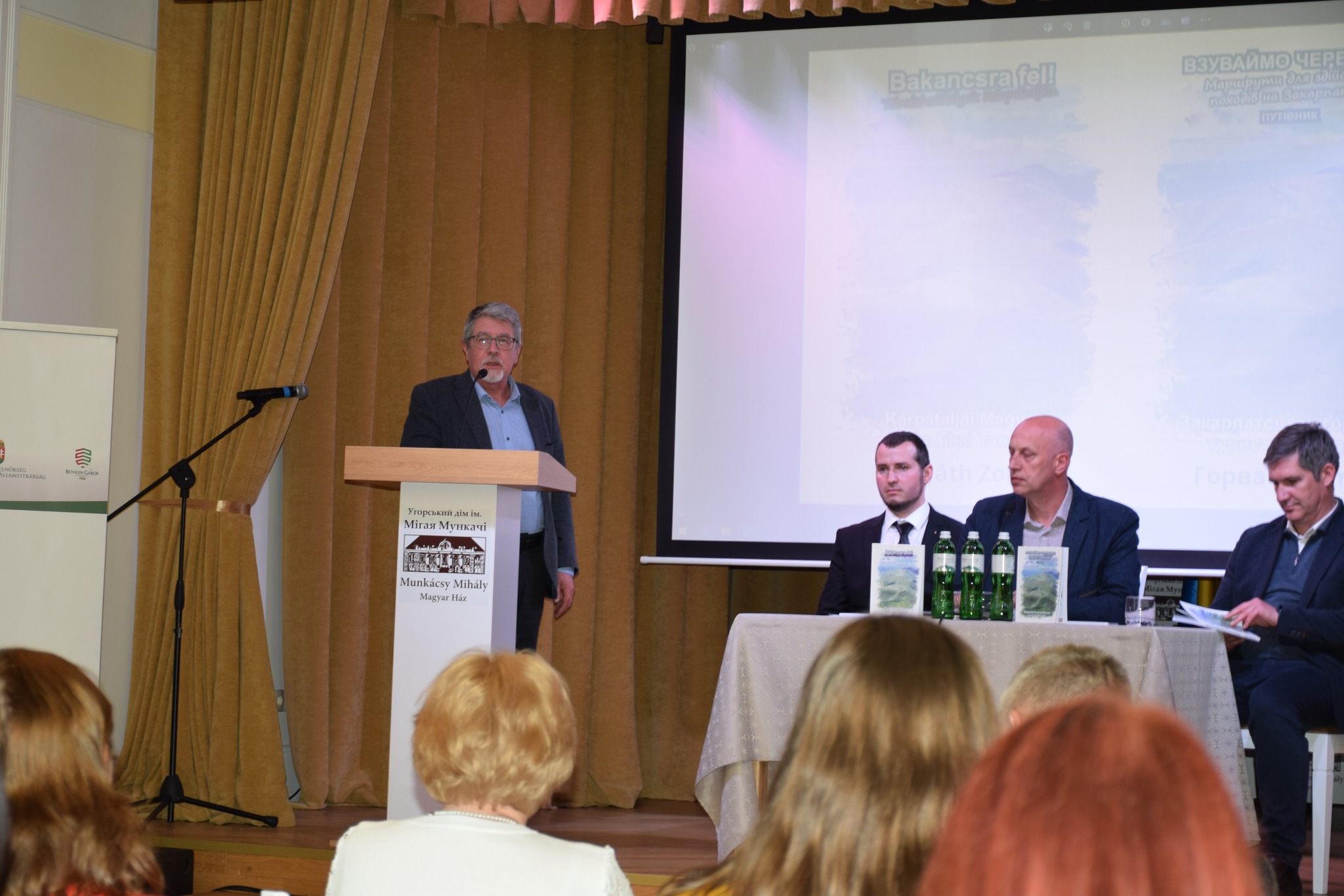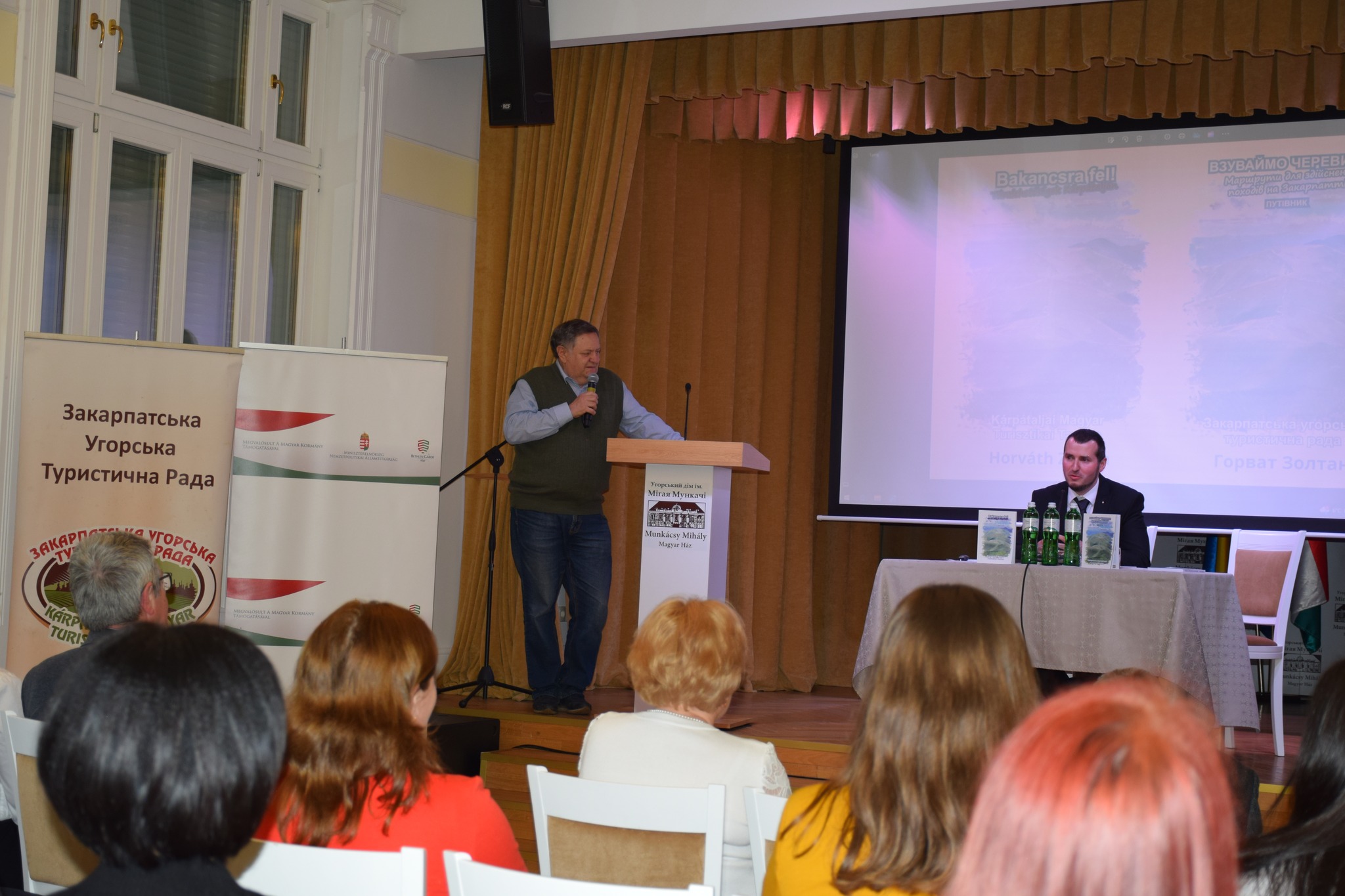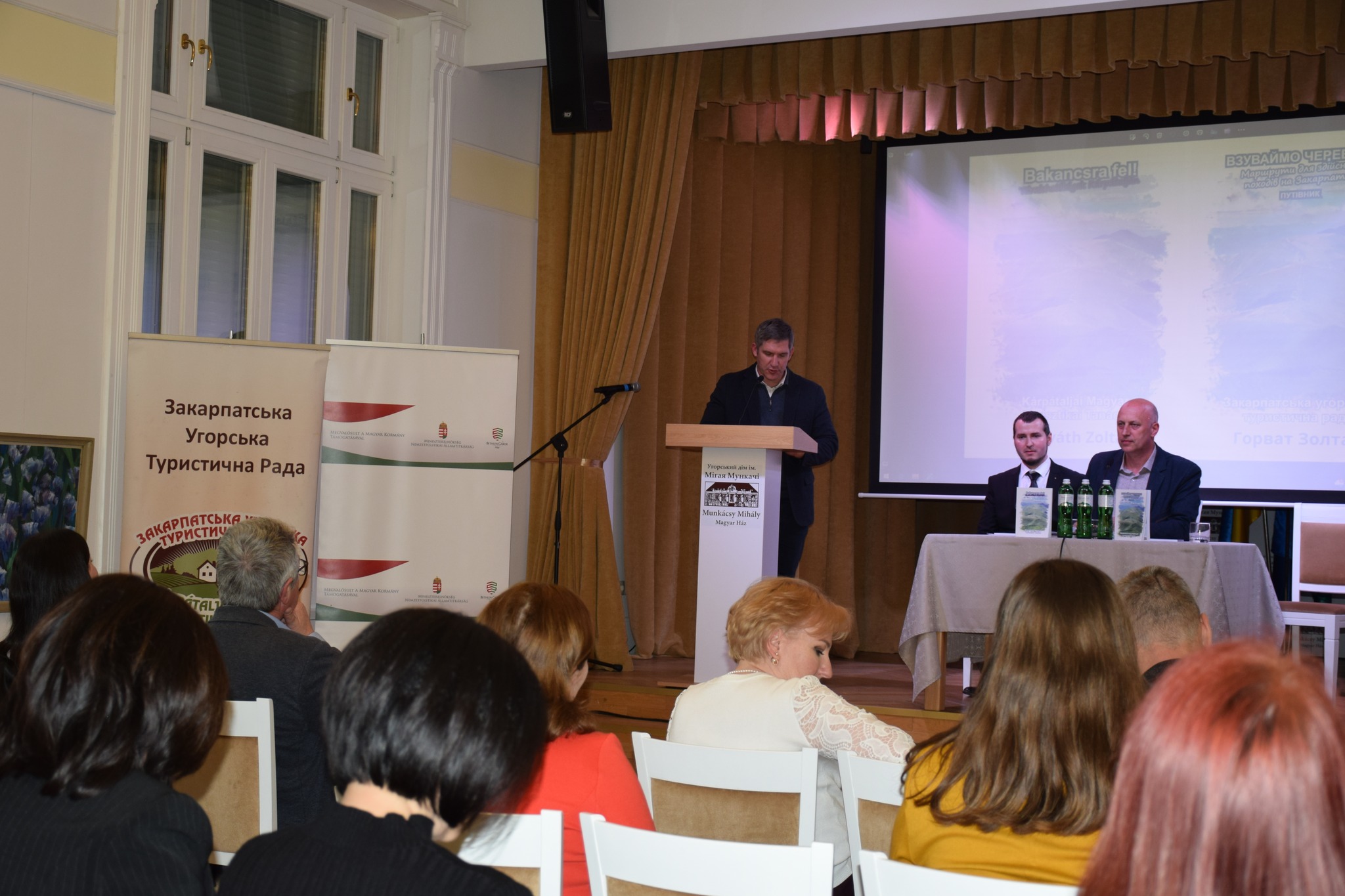 22 квітня 2024 року Закарпатська угорська туристична радав Угорському домі ім. Мігая Мункачі організувала презентаціюугорської та української версії путівника «Взуваймо черевики! Маршрути для здійснення походів на Закарпатті» На початку презентації з вітальним словом до присутніх звернувся МештерАндрій, головаЗакарпатської угорської туристичної ради. У своєму виступі він розповів, що книга видана за підтримки Європейського Союзу в рамках проекту HUSKROUA. Путівник видано українською та угорською мовами, тому він доступний як для вітчизняних, так і для іноземних туристів. З вітальним словом виступила також Чізмадіа Александра – консул, аташе по зовнішньоекономічним питанням Генерального консульства Угорщини в Ужгороді, яка в своїй промові підкреслила, що Європейський Союз при своїй підтримці особливу увагу приділяєтранскордонним програмам. Однією з переваг цього є розвиток тісніших зв’язків та організація спільних програм. У своєму виступі ГорзовОлександра,заступниця управління туризму та курортів Закарпатської обласної військової адміністрації, зазначила, що, незважаючи на війну, на Закарпатті реалізується низка туристичних програм і звернула нашу увагу на те, що реєстрація туристичних маршрутів продовжуватиметься й надалі. ГулачіГейза, заступник голови Товариства угорської культури Закарпаття (КМКС), говорив про любов до природи та мир, який випромінюють гори. Торпоі Йосип, заступник голови Закарпатської угорської туристичної ради та один з редакторів путівника, розповів про деталі видання книги, підкресливши, скільки праці, наполегливості та таланту потрібно, щоб написати таку книгу. Наприкінці презентації путівника його автор, ГорватЗолтан, голова секції активного туризму Закарпатської угорської туристичної ради, презентував книгу. У своїй презентації він подякував Закарпатській угорській туристичній радіза допомогу у виданні книги, доктору Торпоі Йосипу та доктору БергхауеруОлександру за редакторську роботу та багато корисних порад, своїм колегам за спільні походи і, не в останню чергу, своїй родині за те, що дозволили йому займатися своїм хобі та за те, що ця книга побачила світ. Автор розповів про деталі написання путівника та його зміст. Книга містить 35 описів походів різного рівня складності, з кольоровими фотографіями, GPS-координатами, картами, програмами та туристичними об’єктами. Наприкінці презентації відбулася автограф-сесія.